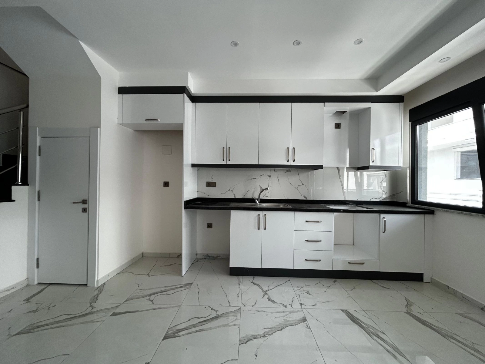 5 katlı binanın 5. katında bulunan dairemiz engelsiz girişi mevcuttur direk asansöre ulaşım kolaylığı vardır. merkezde bulunması sebebi ile home ofis yada ofis kullanımına uygundur . girişte amerikan mutfaklı salon sizleri karşılarken üst katta iki adet yatak odası bulunuyor laminant parke ile döşenmiş. 2 banyo mevcuttur birisi alt katta diğeri üst katta merdivenler kullanmı oldukça rahattır.